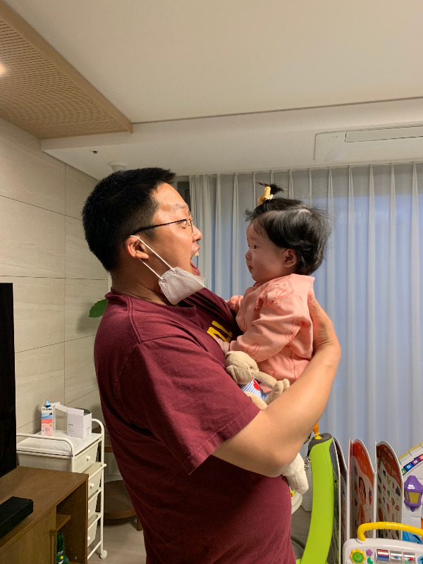 "하긴.. 오빠 얼굴이 신기하게 생기긴 했지." 하며 흐뭇해했다. 서윤이가 접한 낯선 사람 중 유일하게 울지 않았다고 하니 그것만으로도 영광이 아닌가! 다소 우스꽝스러운 사진 한 장을 남긴 것만으로도 나에겐 큰 행복이었다.