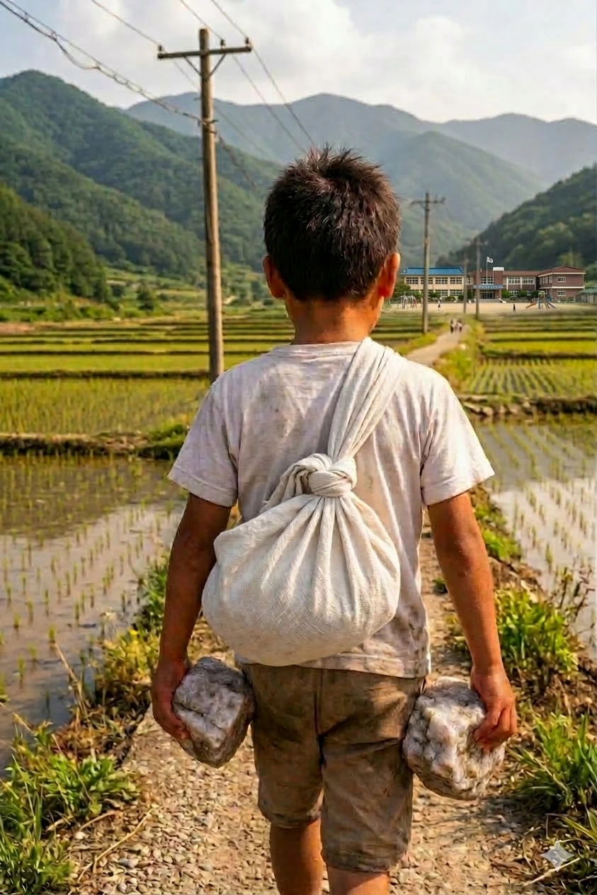 아이들은 그 천 가방을 멘 채 학교 앞 흙길을 달렸다. 길가의 키 작은 들풀들이 바람에 살짝 흔들리고, 발뒤꿈치에서는 고운 먼지가 가볍게 일어났다.