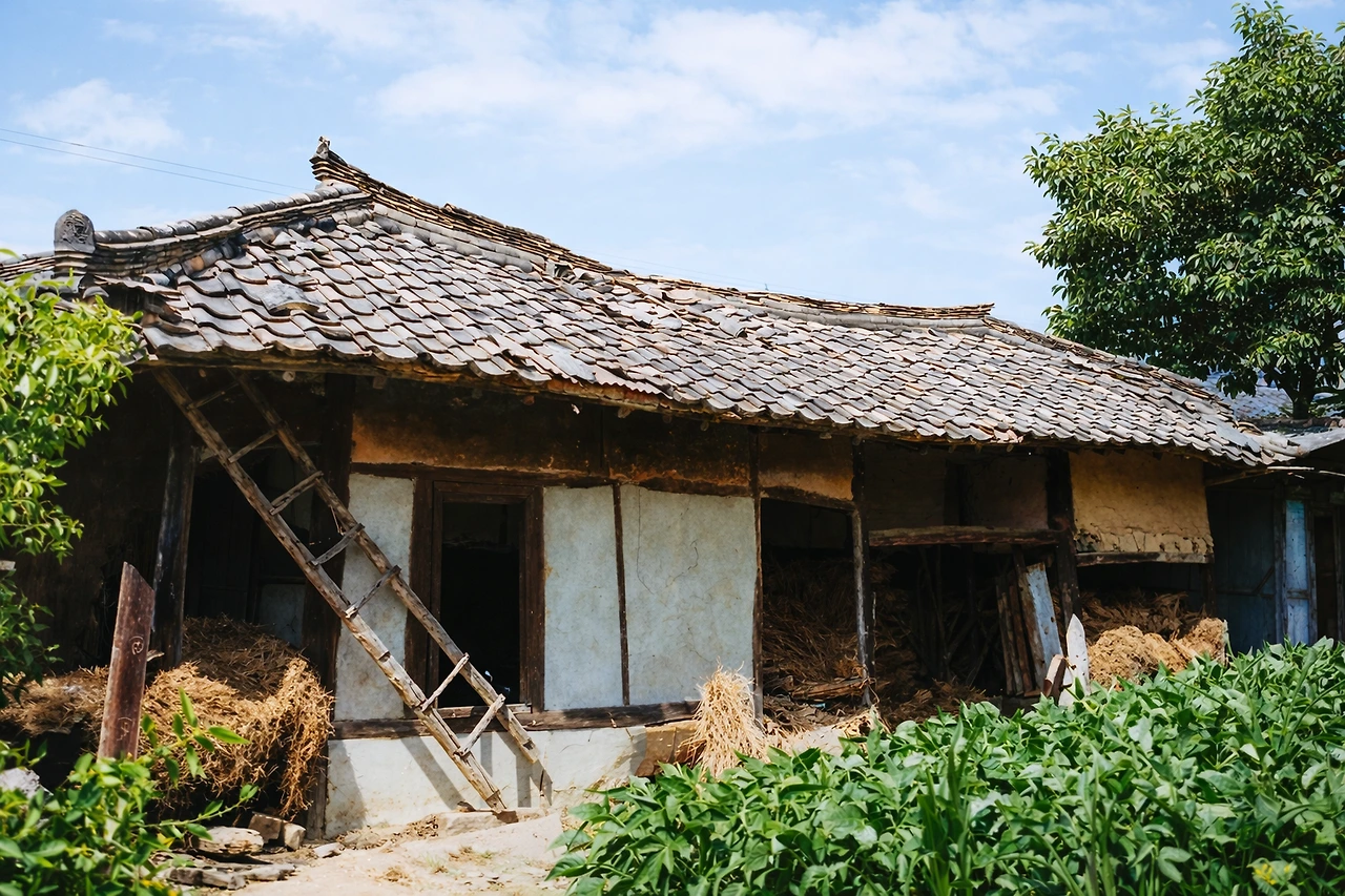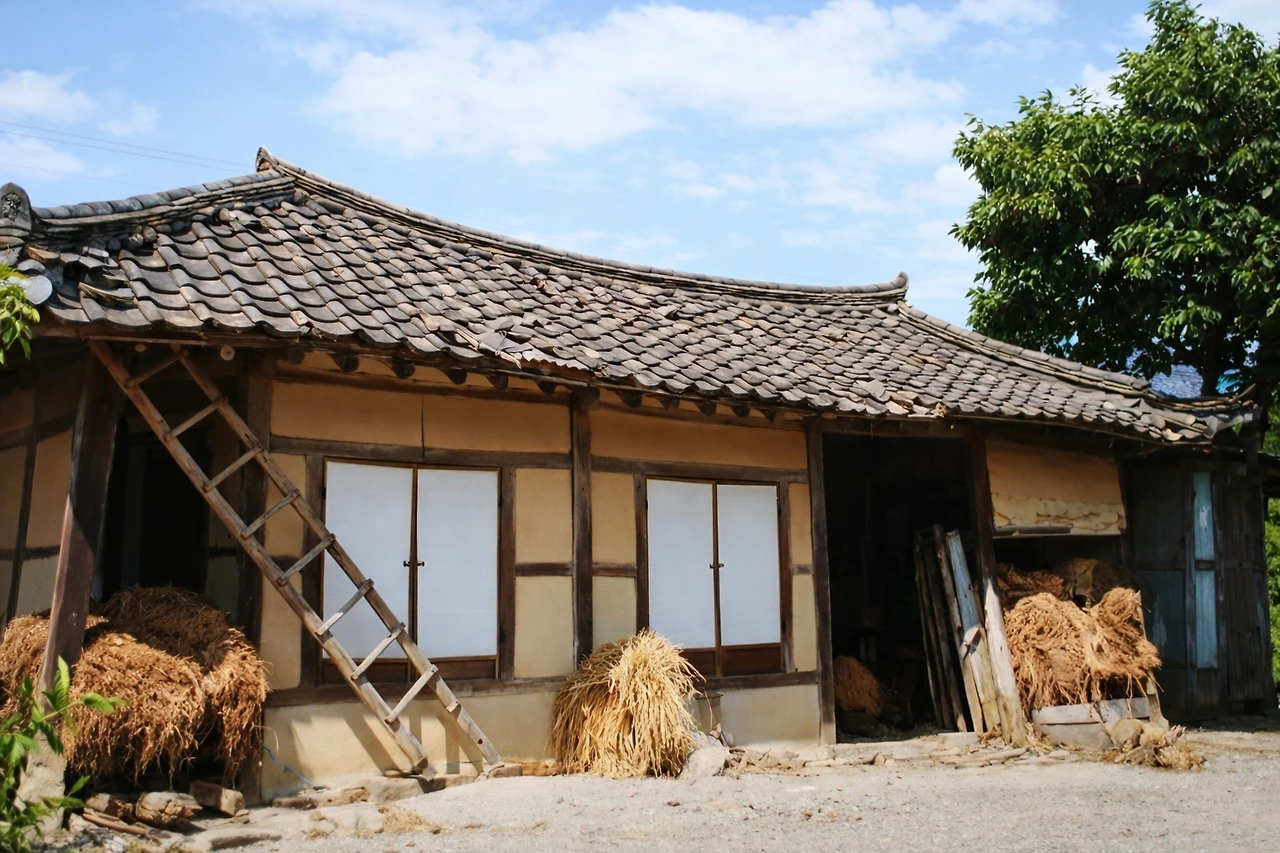 처마 한쪽에는 낡은 나무 사다리가 지붕을 향해 기대어 있었다. 닳아 반들거리는 발판은 누군가의 손과 발이 오래도록 머물렀던 흔적이었다. 그 사다리를 타고 올라 기와를 고치고, 볏짚을 손질하던 날들이 이 마당 어딘가에 아직 남아 있는 듯했다.