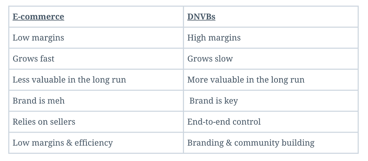 앞서 언급한 이런 새로운 브랜드들을 두고 흔히 DNVB — Digitally-Native Vertical Brand, 즉 디지털 태생의 버티컬 브랜드라고 표현한다.