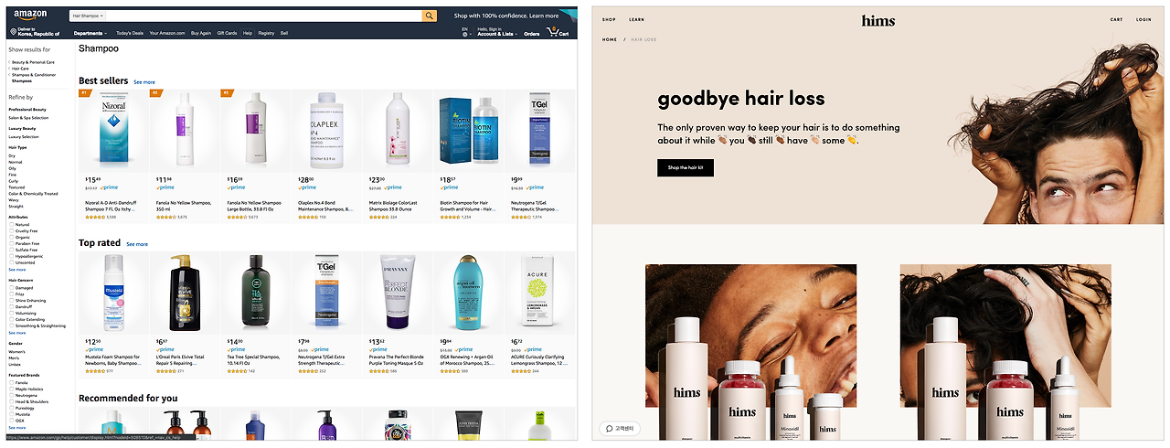 소비재 제품을 Amazon으로 유통하지 않는 것은 제품이 소비자에게 노출될 수 있는 강력한 기회를 놓치는 것이다. 당연히, e-commerce 환경에 진입한 업체로써는 쉽지 않은 선택이다. 그럼에도 불구하고 많은 신규 브랜드들이 자체 채널 유통을 선택하는 것은 대형 플랫폼에서는 구현하기 어려운, 그만의 구매 경험을 제공하기 위해서다. Warby Parker의 home try-on과 virtual try-on, Blue Apron의 다양한 정기배송 옵션, Care/of의 건강 맞춤 제품 추천은 Amazon을 통해 제공하기 어려운 방식이다. Milk Makeup의 영상 튜토리얼, Dame Products의 과감한 제품 프리젠테이션, Glossier의 생동감 있는 화보 역시 Amazon의 웹이나 앱에서는 제대로 표현해내기 어렵다.