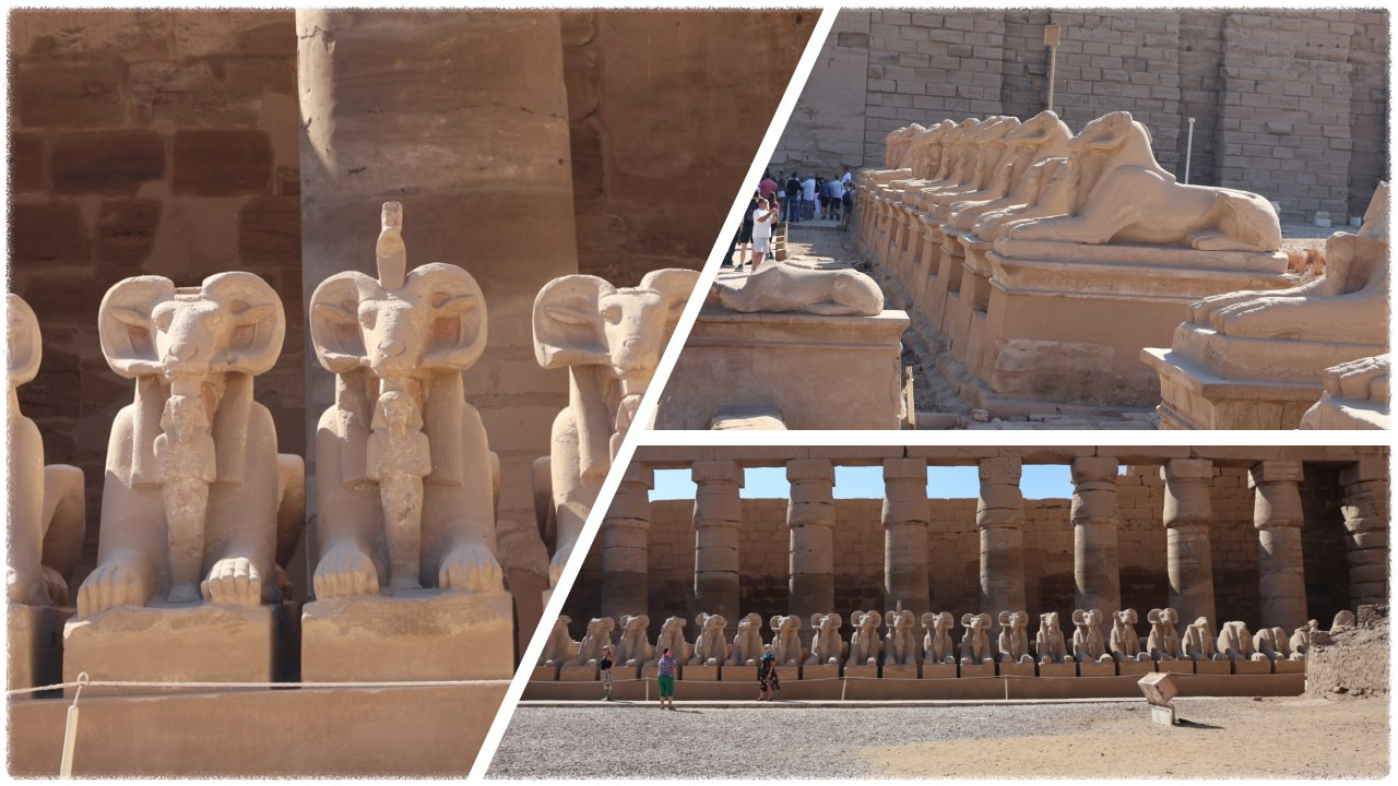 카르낙 신전으로 향하는 길을 따라 걷다 보면, 길 양옆으로 늘어선 스핑크스들이 줄지어 서 있는 광경을 마주하게 된다. 하지만 이곳의 스핑크스는 우리가 흔히 아는 것과는 다르다. 사자의 강인한 몸을 가졌으면서도, 머리는 사자가 아닌 양이었다. 나는 그 앞에 서서 천천히 그들의 모습을 살펴보았다. 수십 개의 돌조각들이 줄지어 앉아 고요히 길을 응시하고 있었다. 강렬한 태양 아래, 이들은 변함없이 신전을 지켜보고 있었다. 양의 머리를 한 스핑크스라니... 처음에는 낯설게 보일 수도 있지만, 이곳에서는 자연스러운 조합이었다.