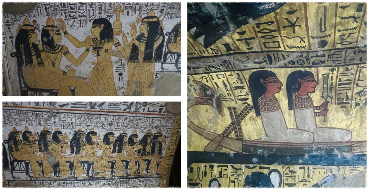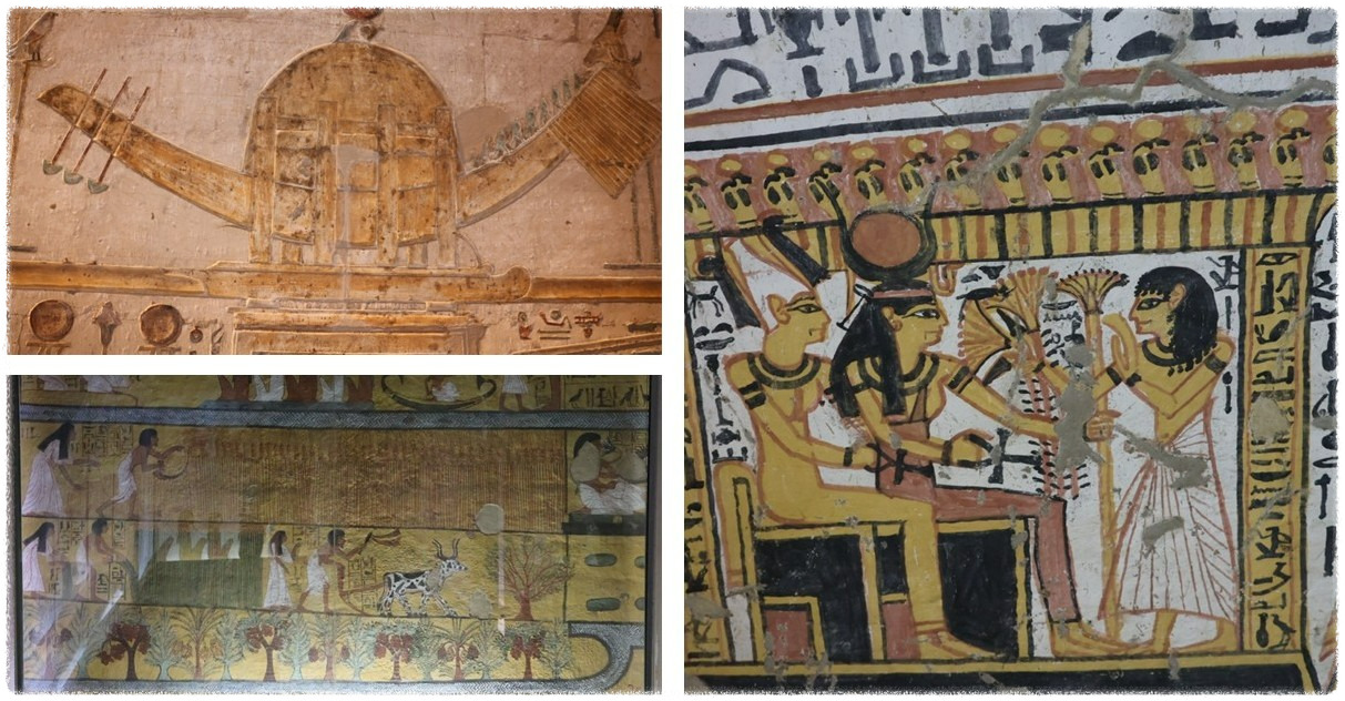 무덤 안으로 더 들어서자, 벽을 가득 채운 그림들이 한눈에 들어왔다. 신성한 장면들이었다. 오시리스의 심판을 받는 순간, 태양신 라의 배를 타고 가는 여정, 하늘을 나는 매의 형상. 왕과 귀족들의 무덤에서도 익숙하게 보았던 것들이지만, 어딘가 달랐다.