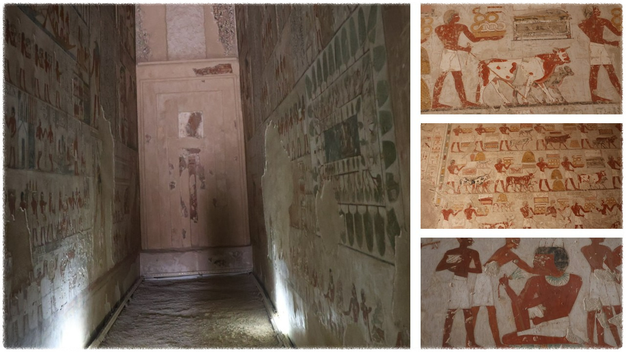 라크미레의 무덤 입구를 지나자, 어둠 속에서 시간이 멈춘 듯한 공간이 펼쳐졌다. 벽마다 빼곡히 그려진 장면들이 빛을 머금고 살아나는 듯했다. 무덤을 안내하는 인솔자는 한 손에 손전등을 들고 벽화를 하나하나 비추며 우리를 이끌었다. 그는 이곳에 대한 자부심이 가득한 듯 보였다.