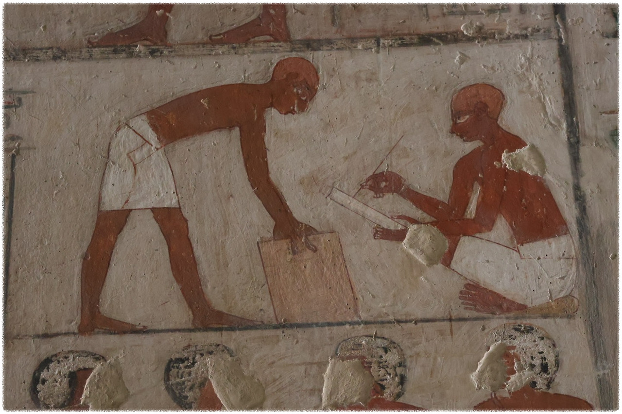 줄지어 앉아 기록을 남기는 서기관들, 공물을 분류하는 감독관들, 빵을 굽고 곡식을 나르는 노동자들, 채찍을 맞으며 돌을 나르는 노예들…. 같은 공간 안에 존재하지만, 이들의 위치는 너무나도 달랐다.