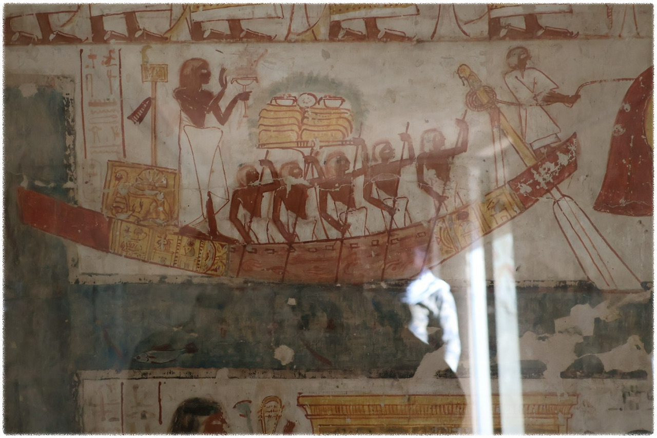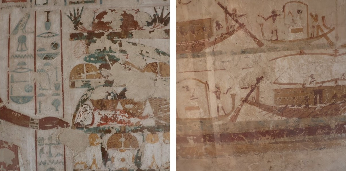 그리고 더 무덤 안쪽으로 들어가니 배 위에서 이어지는 연회의 장면이 나타난다. 사람들은 음식을 나누고, 음악을 연주하고, 향을 피우며 정성스레 무언가를 기념하고 있었다. 강 위에서 펼쳐지는 이 장면은 베니아의 죽음을 애도하는 의식이었을까, 아니면 사후의 세계로의 평안한 이행을 기원하는 순례였을까.