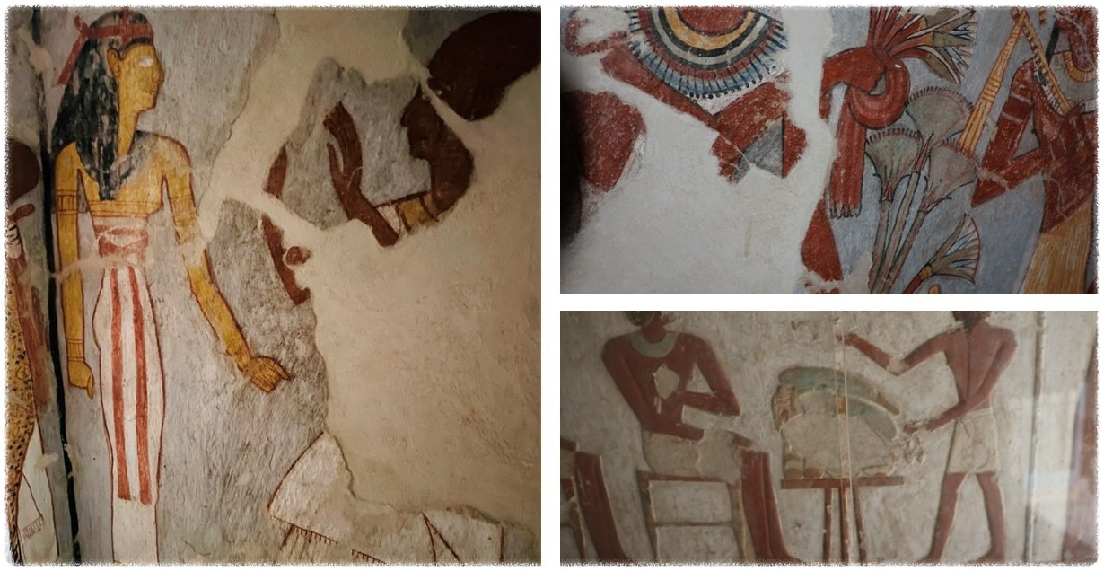 나는 조심스럽게 벽화들을 훑었다. 그러면서 이런 인물이었을까 하고 추측해 보게 되었다. '콘수(Khonsw TT 31)'는 베니아처럼 행정이나 정치의 중심에 있었던 인물은 아니었던 것 같다. 무덤 장식의 양식, 입은 옷의 형태, 제물 앞에 서 있는 자세들을 보면, 그는 제사장 계급, 혹은 신전에서 노래와 의식을 담당했던 ‘신의 가수’ 같은 역할을 했을 가능성이 있어 보였다.