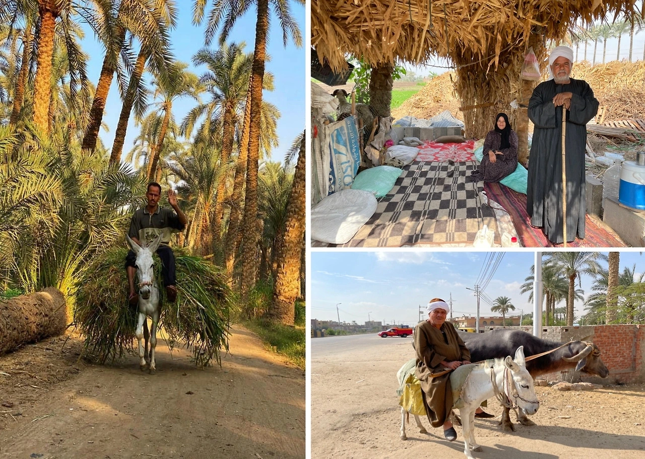 복잡한 카이로를 벗어나 한 시간만 나일 강가를 따라 내려가면, 전혀 다른 세상이 펼쳐진다. 대추야자나무가 하늘을 가릴 만큼 빽빽한 숲 사이로 당나귀를 탄 농부가 나타난다. 등에 실린 초록빛 풀들이 좌우로 길게 퍼지고, 농부는 낯선 이방인을 향해 손을 흔들며 웃는다.