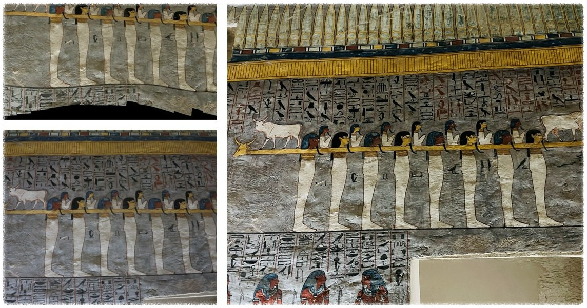 거기에는 소를 이끄는 신들과, 머리에 뿔을 단 신들이 그려져 있었다. 부활과 풍요의 상징이었다. 왕의 영혼은 죽음 이후에도 신성한 소의 형상을 빌어 다시 태어나며, 질서의 수레바퀴를 돌리는 존재가 된다. 짧은 생애였지만, 그는 무너진 이집트를 다시 일으켜 세우고 싶어 했다. 그 꿈은 아비도스 신전에 새겨진 ‘부활의 노래’와 이곳 무덤의 ‘생명의 벽화’에 함께 숨 쉬고 있었다.