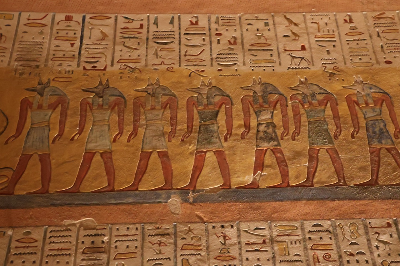 우리는 죽음을 종종 혼자의 길이라고 생각하지만, 적어도 이 무덤 속에서 왕은 집단적인 죽음 속에 살아 있었다. 그는 홀로 걷지 않았다. 모든 신들이, 조상들이, 그리고 상형문자 하나하나에 깃든 말들이 그를 따라 걷고 있었다. 한 장면에서 나는 멈춰 섰다. 어느 인물은 손을 살짝 더 올리고 있었고, 어느 인물은 발을 살짝 더 옮기고 있었다. 같아 보이는 그림 속에서 아주 미세한 ‘다름’이 있었다.
