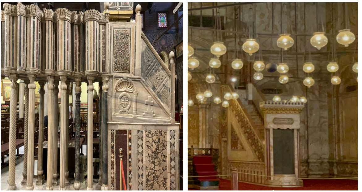 동네마다 우뚝 솟은 미나렛(모스크의 첨탑)과, 그 옆에 얌전히 자리한 돔 형태의 콥틱 교회가 나란히 서 있는 모습을 보는 건 이곳에선 특별한 풍경이 아니다. 어떤 날은 교회가 먼저 보이고, 그 바로 뒷길에 모스크가 자리해 있다. 두 건축물은 놀라우리만치 비슷한 재료로 지어졌고, 내부도 정면을 향해 예배가 드려지며, 종교지도자가 앉는 계단식 의자가 마련돼 있다. 민바르(이맘의 설교대)와 신부의 의자, 외형만 보면 어느 종교의 물건인지 구별하기 쉽지 않다. 이들은 서로 다른 전통을 가졌지만, 공간의 질서와 상징을 함께 나누며 살아간다.