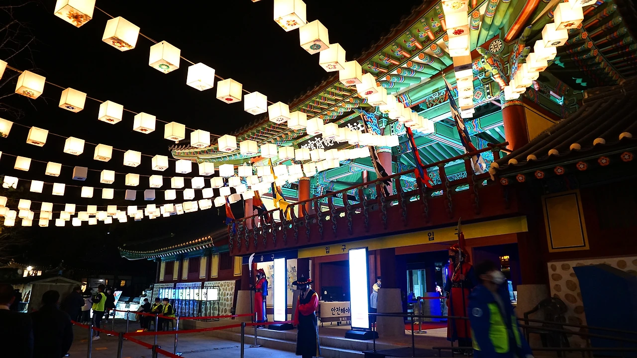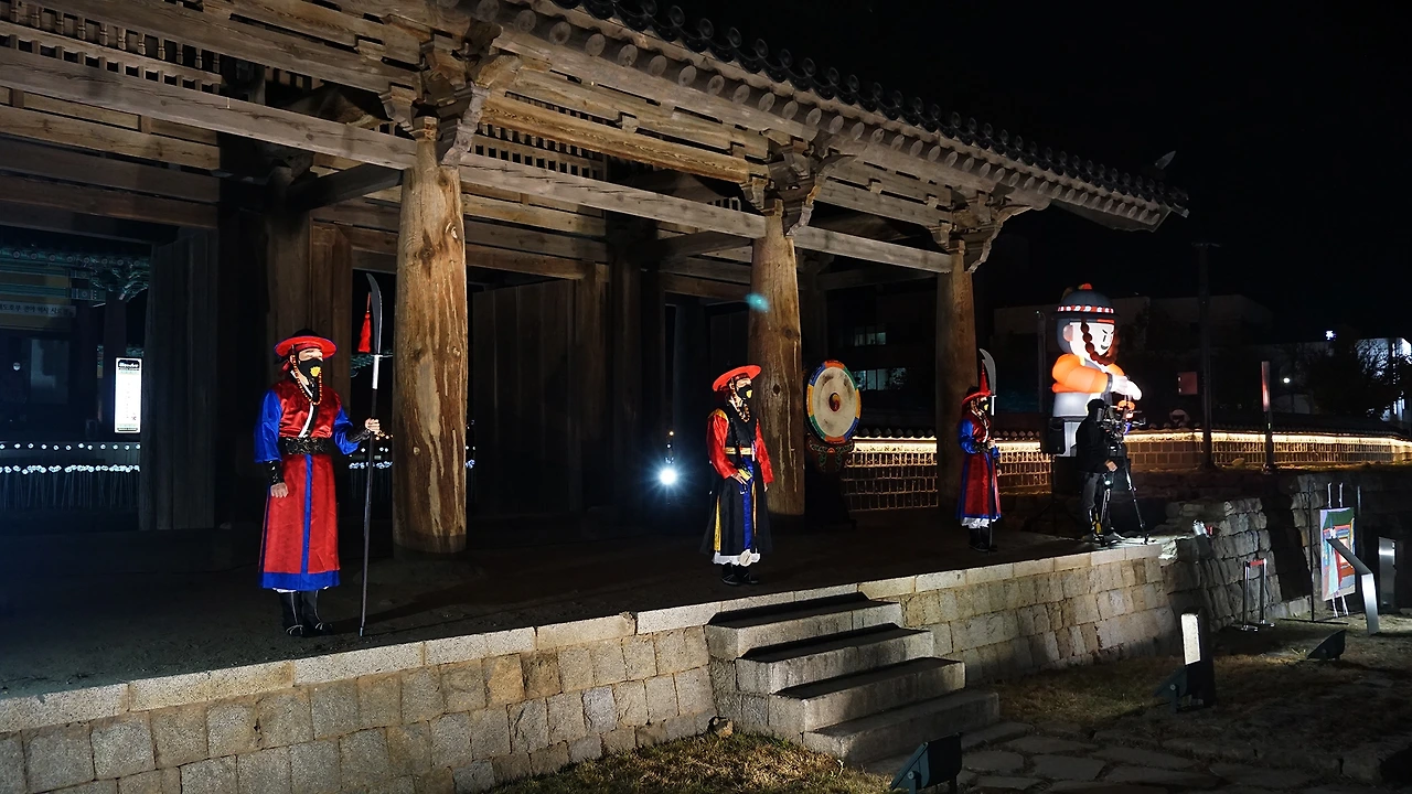 "강릉 야행의 시작을 알리는 '강릉대도호부사 부임행차'를 재현한 등전시와 화려한 미디어파사드,