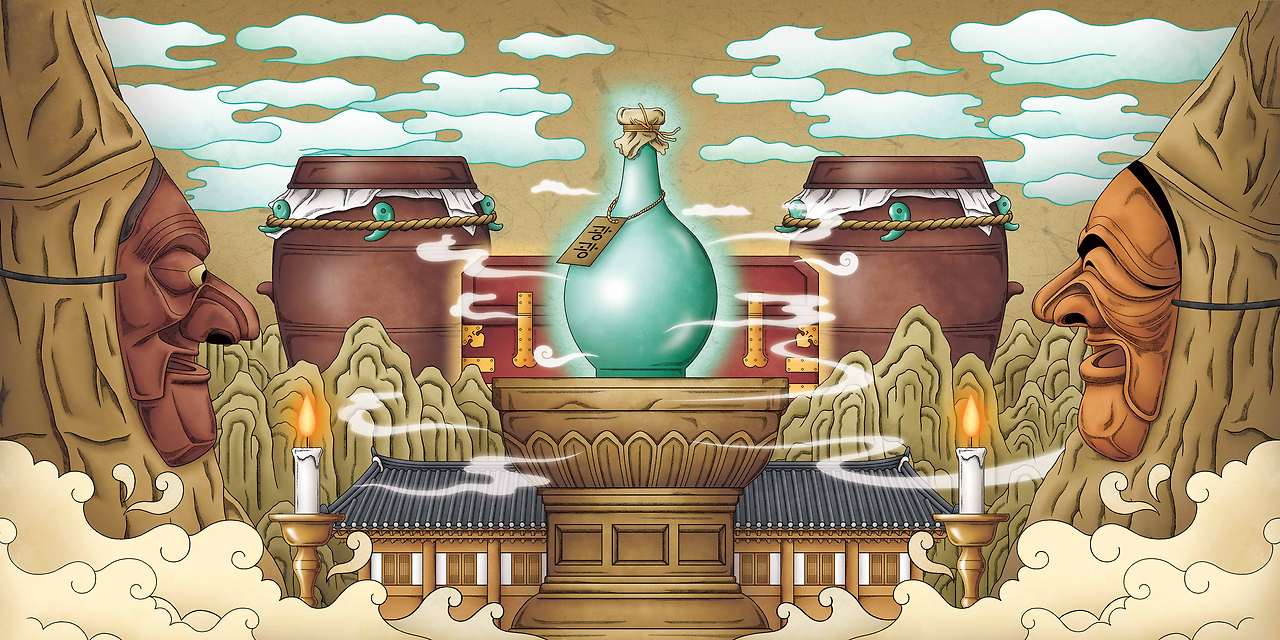 안동소주를 모티브로 작업했던 일러스트레이션.