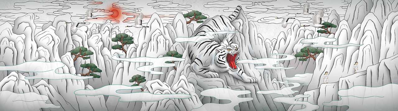 태산들을 지나면 꽃피는 흰 무궁화와 백호