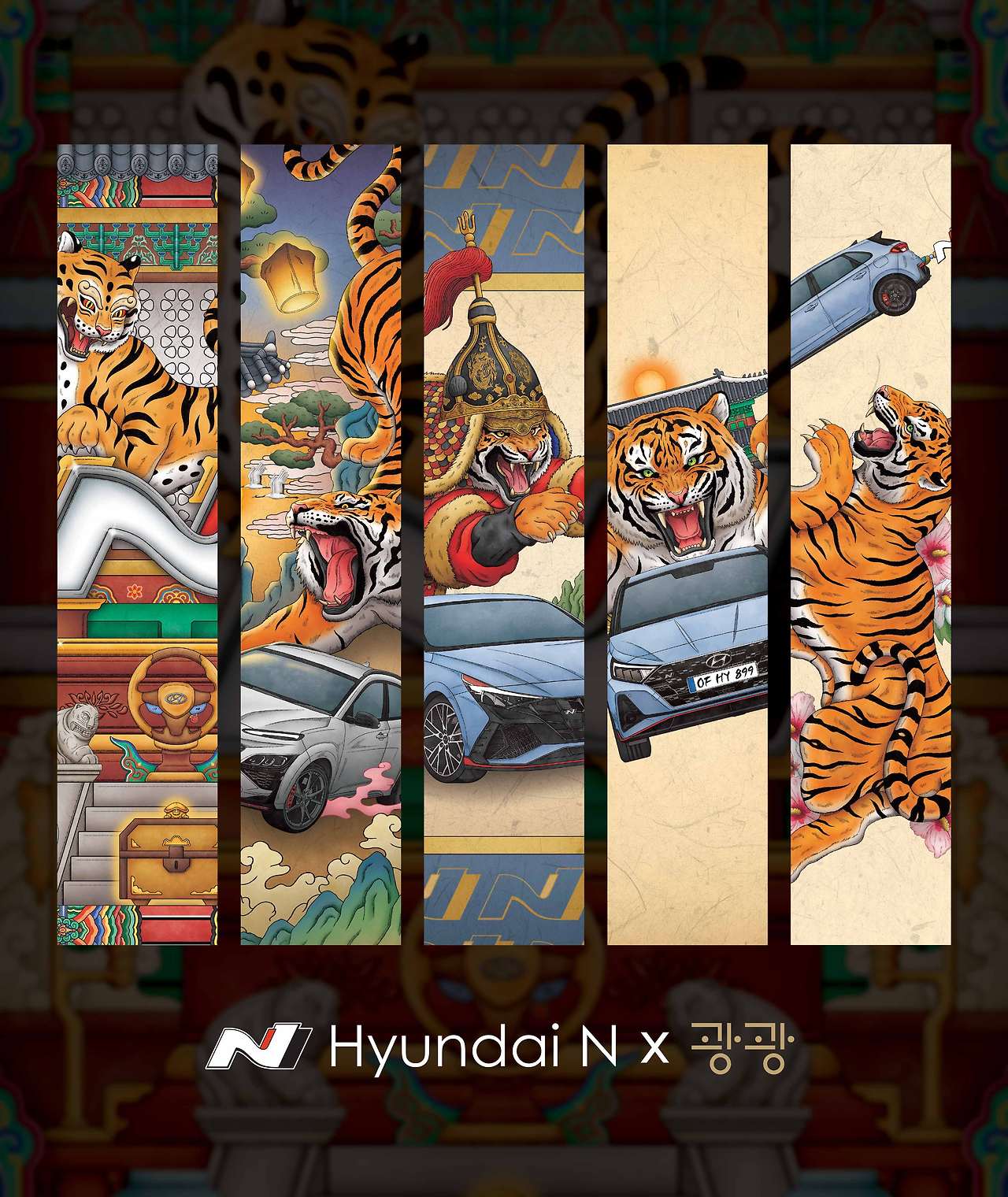 현대자동차 N의 모티브 중 하나인 운전의 즐거움을 자동차 노리개에 비유했고, 한반도의 형태를 띤 호랑이가 이를 원하는 모습을 표현하여 브랜드 이미지를 강조했다.