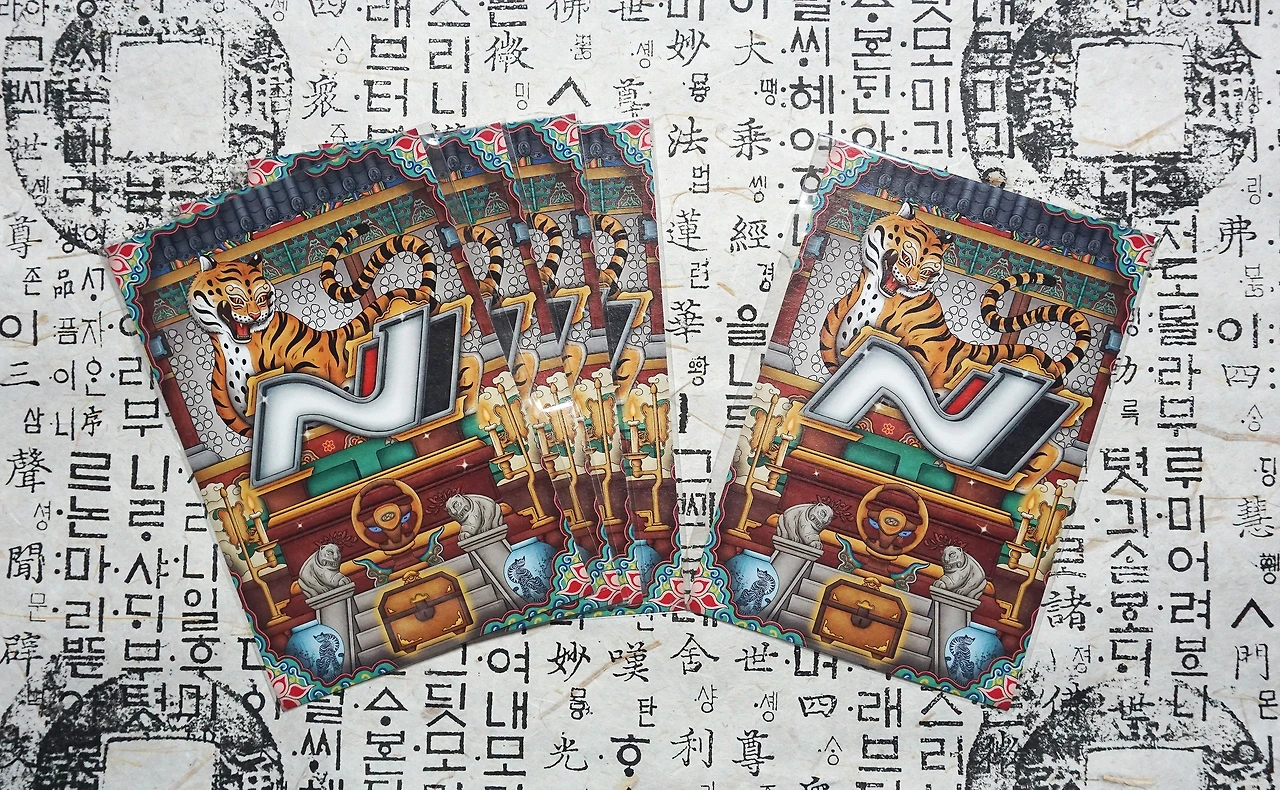 하단에는 N브랜드만의 운전대를 모티브로 한 트로피와 이에 예를 갖추는 듯한 호랑이 석상과 호랑이 청자, 그리고 귀중한 함이 배치하여, 현대자동차의 다채로운 아름다움과 N브랜드만의 유니크한 고풍스러움을 표현했다.