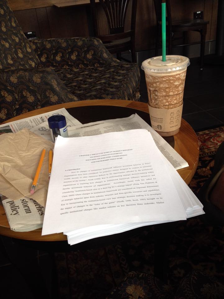 아마 그때 즈음부터였을까, 지금 논문을 마치는 시점까지 2년이 넘는 시간 동안, 학교에서 공부시간 동안 화장실을 가지도, 점심을 먹지도 않게 되었다. 시간 때문에.. 아마 다 합하면 열 손가락을 못 채울 것으로 생각된다. 주변 동기들과의 파티는 참가해본 적도 없다. 이때 내 일과는 10시에 학교 가서 4시에 퇴근하고, 4-9시까지 가족들과의 시간을 보내고 다시 학교로 돌아와 새벽 2시에 돌아가는 루틴이 반복되었다. 글을 읽고 쓰는 언어적인 문제가 아무래도 Native 보다는 절대적으로 떨어지기 때문에 시간을 쓸 수밖에 없었다.