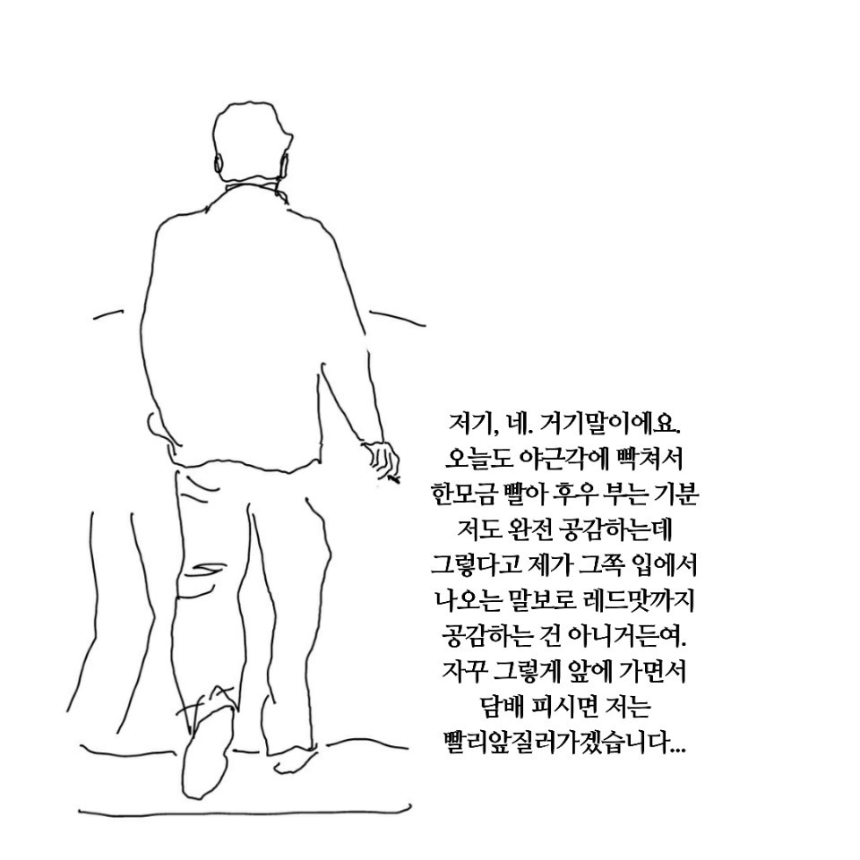후우 내뱉는 남의 한 숨이 뒤쫓아가던 내 코로 후욱하고 들어온다.