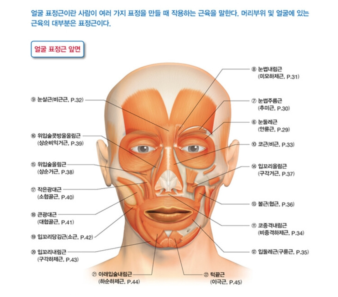 그러니까 저 많은 근육으로 표정이 만들어지는 것이었다.