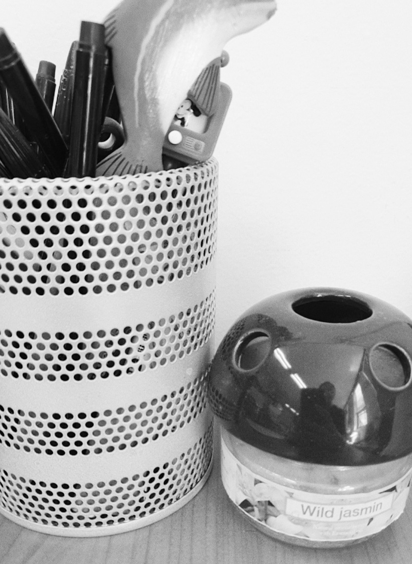몸에 바르거나 뿌리는 것이 부담스럽다면 사무실 자기 자리에 아로마 향이 나는 오일을 올려놓는 것을 추천한다.