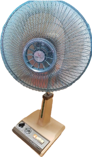 비비드하게 푸른 모기장 재질의 천으로 덮어씌운 녹슨 철제 망 사이로 파란 날개가 털털 거리며 돌아가던 골드스타(옛 엘쥐) 선풍기.