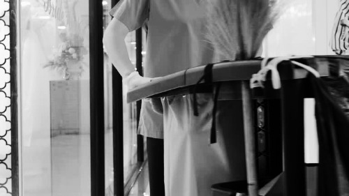 "일찍 오신 거지요? 내가 평소랑 다름없이 청소하는 건데."