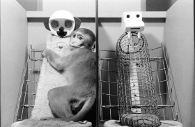 실험 속 원숭이는 젖병 달린 인형이 아닌 털달린 원숭이에게 매달렸다.