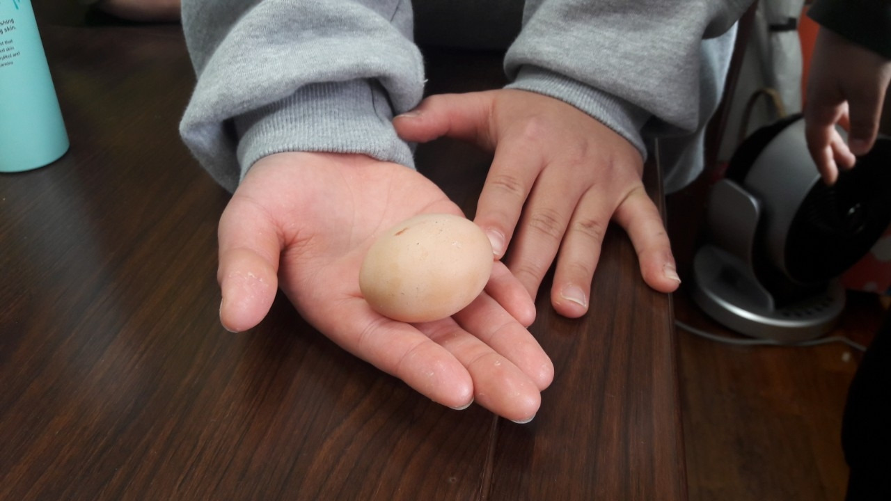 첫 알은 매우 작았다. 흔히 보는 달걀보다 더 작았는데 첫 알이라 그렇기도 하고, 백봉 오골계라 더 작다고 했다. 그리고 따뜻했다.