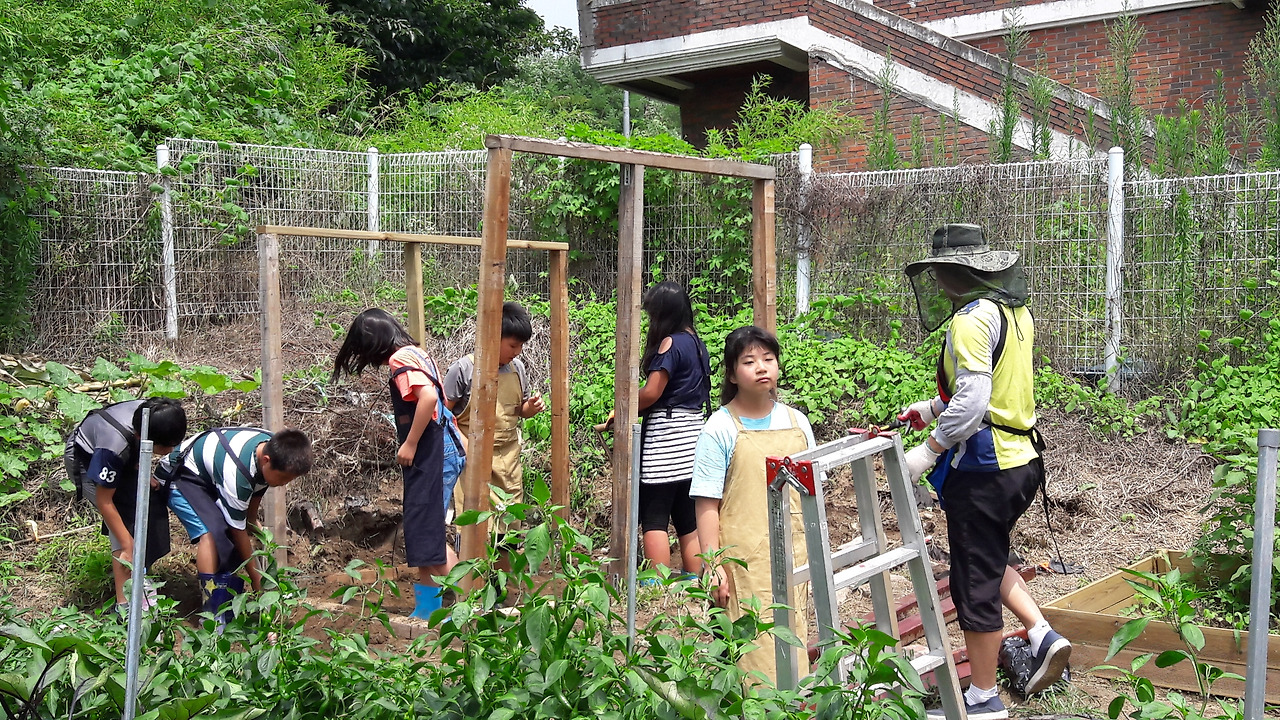 뜨거웠던 여름날 아이들은 목재를 사서 학교 텃밭에 따밤랜드를 지었고 둥지를 만들었다. 둘은 6개월간 아이들의 사랑을 먹고 쑥쑥 자랐다. 여름방학엔 건모가 지극정성으로 돌봐주어 무사히 더운 여름을 이겨냈다. 초가을 태풍에 모이통 뚜껑이 날아가 버려 빗물로 가득 찬 사료를 버려야 했을 때는 정말 속상했다. 며칠 전에는 추위에 얼까 봐 비닐로 따뜻하게 집을 감싸줬다.