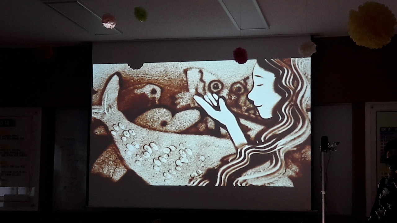 우리의 고민을 들은 공연기획팀은 고맙게도 같은 금액으로 세 번으로 나누어 공연해주겠다 제안했다. 내용도 학년 수준에 따라 다르게 구성하여 전교생이 다 관람할 수 있었다. 수준 높은 샌드아트 공연에 오랜만에 아이들도 선생님들도 활짝 웃었다.