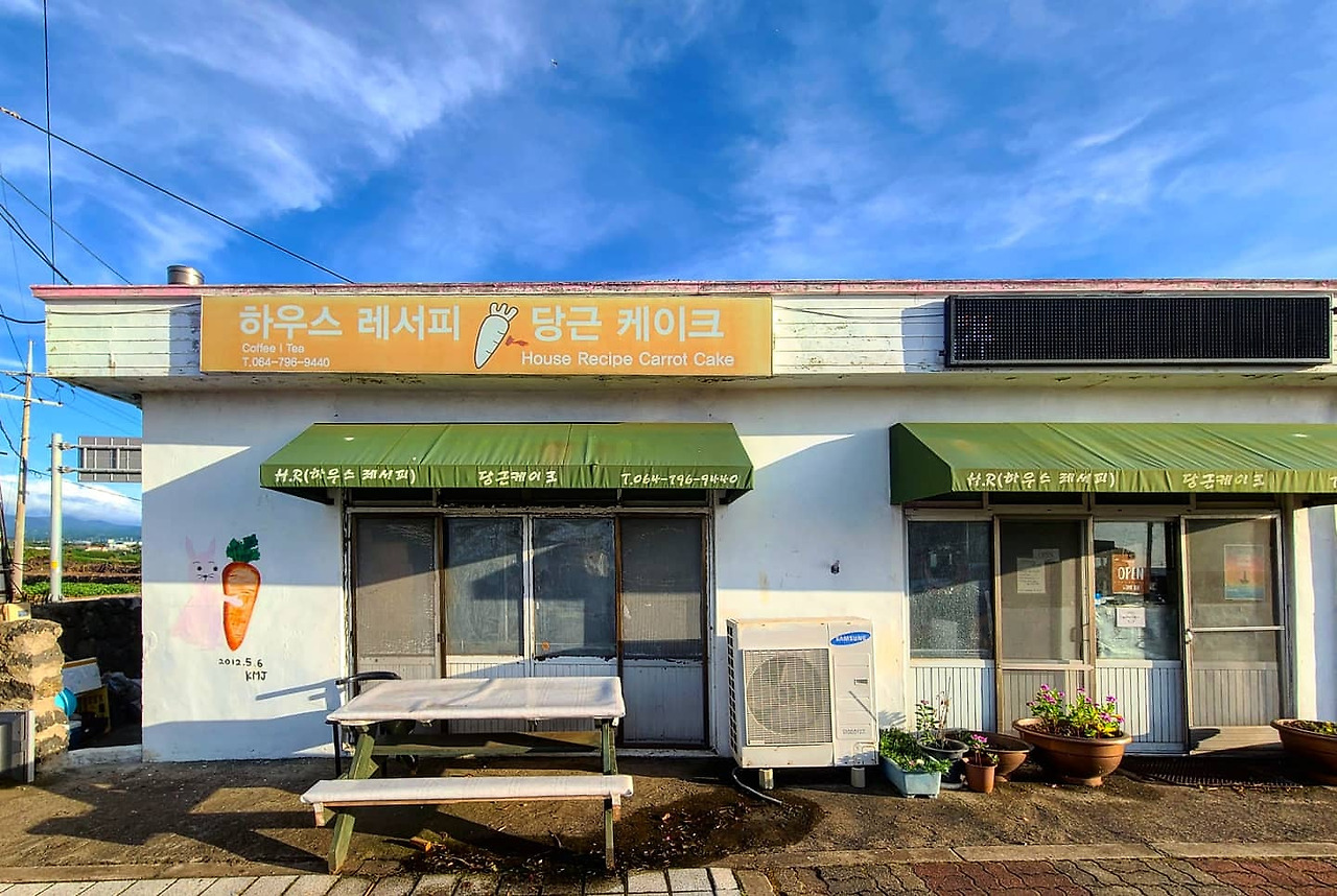 부엌에서 하얀 숏컷 머리와 진한 눈썹 화장을 한 할머니 한 분이 웃으며 나오신다. 할머니는 수십 년간 미국에서, 서울에서, 그리고 이곳 제주에서는 11년째 당근케이크를 만들었다고 자신을 소개하셨다. 또 자기가 만든 케이크가 수년 전엔 청와대에 납품되기도 했다고 조금 빠르게 말씀하셨고. 할머니는 쇼케이스에 놓인 당근 케이크와 당근 찹쌀 케이크와 당근 머핀도 하나하나 설명해주시며 차분이 골라보라고 하셨다. 그 말에 가게 내부는 오묘함을 벗고 단단함을 입는다. 할머니는 분명 자기가 만든 케이크에 단정한 자부심을 가지고 계신 것이 분명했다.
