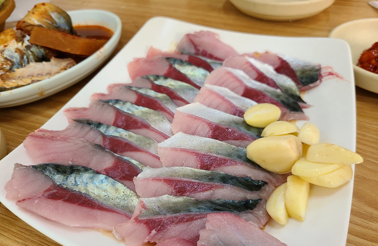 너무나도 익숙한 물고기여서 조림이나 구이나 찌개에서도 자주 봐왔던 고등어인데, '회'라니! 비리지 않을까, 하는 걱정과 그래도 여기까지 왔는데, 하는 마음이 뒤엉켰다. 그렇게 잠깐 고민하다가 우린 결국,