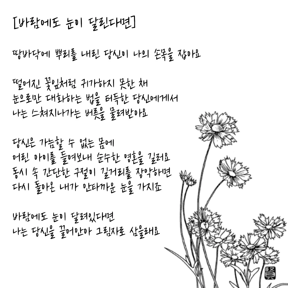 땅바닥에 뿌리를 내린 당신이 나의 손목을 잡아요