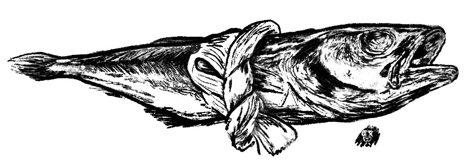 비쩍 곯아버린 명태 한마리가 실타래에