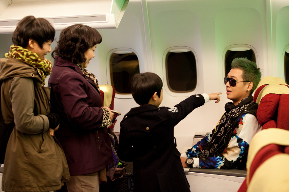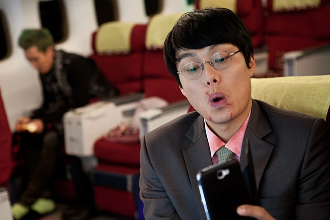 사실 90여분이라는 영화의 러닝타임의 대부분이 비행기 안이라는 한정된 공간 속에서 진행됨에도 불구하고 관객의 지루함을 최소화시킬 수 있는 데에는 영화 속에 등장하는 다양한 캐릭터들의 향연이 가장 큰 역할을 한다. 우선 주인공인 한류스타 마준규. 작품 안에서 가장 큰 비중을 차지하는 마준규 역의 정경호는 영화 속에서 꽤나 인상적인 호연을 펼쳐보였다. 수많은 캐릭터들의, 이른바 캐릭터쇼가 펼쳐지는 개인기의 향연 속에서도 배우 정경호가 연기한 마준규란 캐릭터는 상당히 안정적으로 느껴졌고 전체적으로 다소 붕 떠있는 작품 전체의 연극적인 과장된 공기를 영화적인 호흡으로 끌어내리는데 상당 부분 일조한다. 어쨌든 이러나 저러나 영화 속 마준규의 찰진 욕은 꽤나 인상적이었으며 배우 정경호는 마준규라는, 결벽증 심하고 이중적이며 까탈스러운 톱스타 캐릭터를 무난히 잘 소화해냈다. 이정도면 그 정신없는 영화 속 아비규환의 와중에서도 자기 몫을 충분히 해줬다는 생각이고, '그 많은 배우 중 왜 정경호를 캐스팅했나? 단지 대학교 후배라서?' 라는 의구심 어린 의문에도 충분한 답이 되었다.