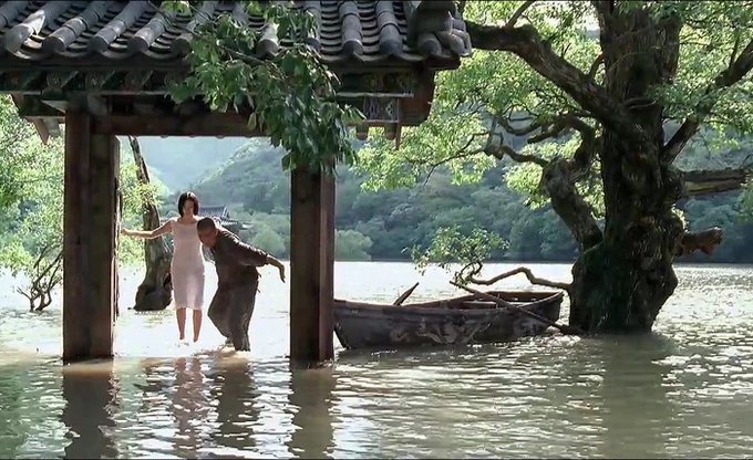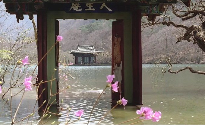 불교에서 나타나는 사찰건축에서는 물을 정화의 의미로 두었다. 속세에서 묻은 때를 씻어내는 역할을 하는 물을 꼭 지나게 하는 것이다. <봄 여름 가을 겨울 그리고 봄>은 물을 단순히 건너는 것이 아니라 배를 타고 지나야 할 정도로 많이 두었다. 영화에서는 물도 흐르고 공간도 흐른다. 우리의 시간도 인생도 흐른다. 흘러가는 것의 의미에 대해 생각해 볼 수 있는 영화다.