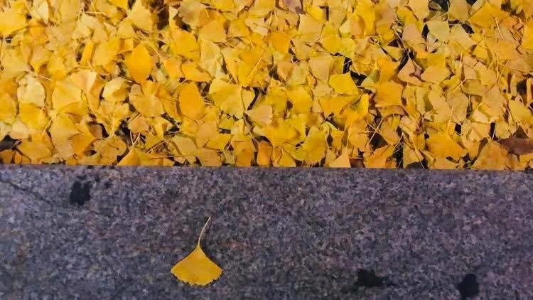 돌 위에 한 장의 잎이 홀로 내려앉아 있다