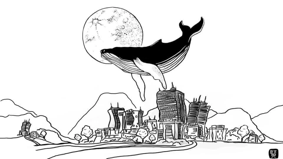 달이 유난히 크게 걸린 밤이면 도시는 잠깐 멈춘 것처럼 보인다. 불이 켜진 창문들은 각자의 사정을 품고 있지만 멀리서 보면 하나의 표면처럼 평평하다. 그 위로 고래 한 마리가 지나간다고 상상해본다. 바다도 없이 헤엄치는 고래. 물결 대신 공기를 가르며 천천히 몸을 옮기는 존재.