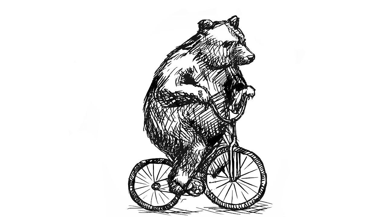 곰은 제 몸에 맞지도 않는 자전거를 타고
