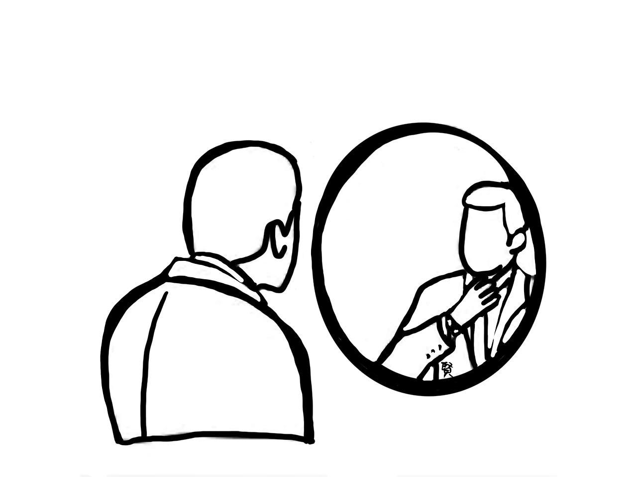 거울에 비친 내 모습을 바라보다 눈을 감습니다