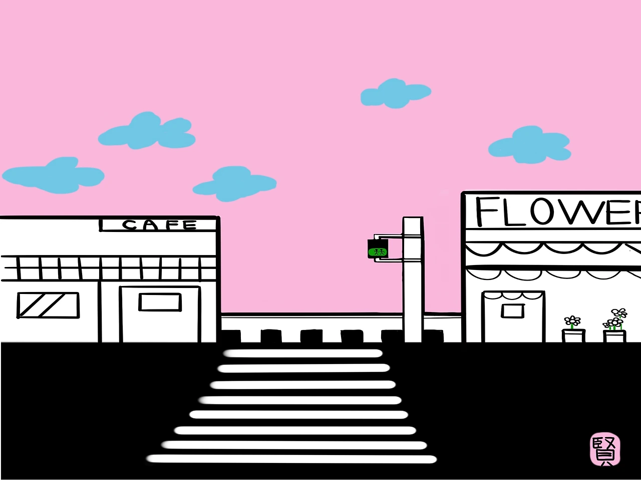 횡단보도의 검고 하얀 등을 조심스레 밟으며