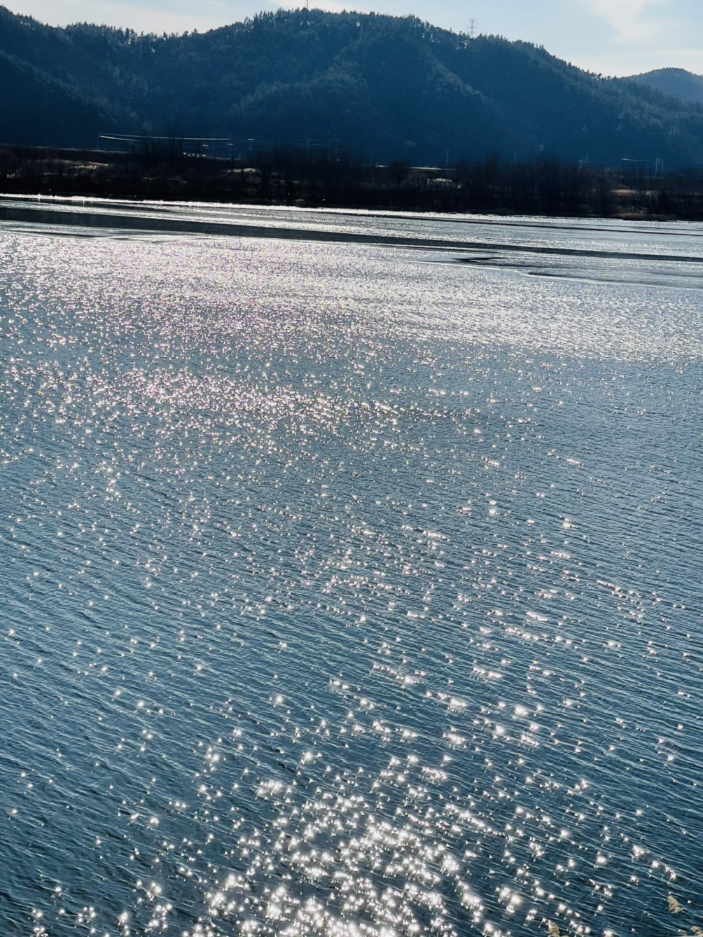 볕이 강물 위로 머물러 한껏 윤슬을 보이는데