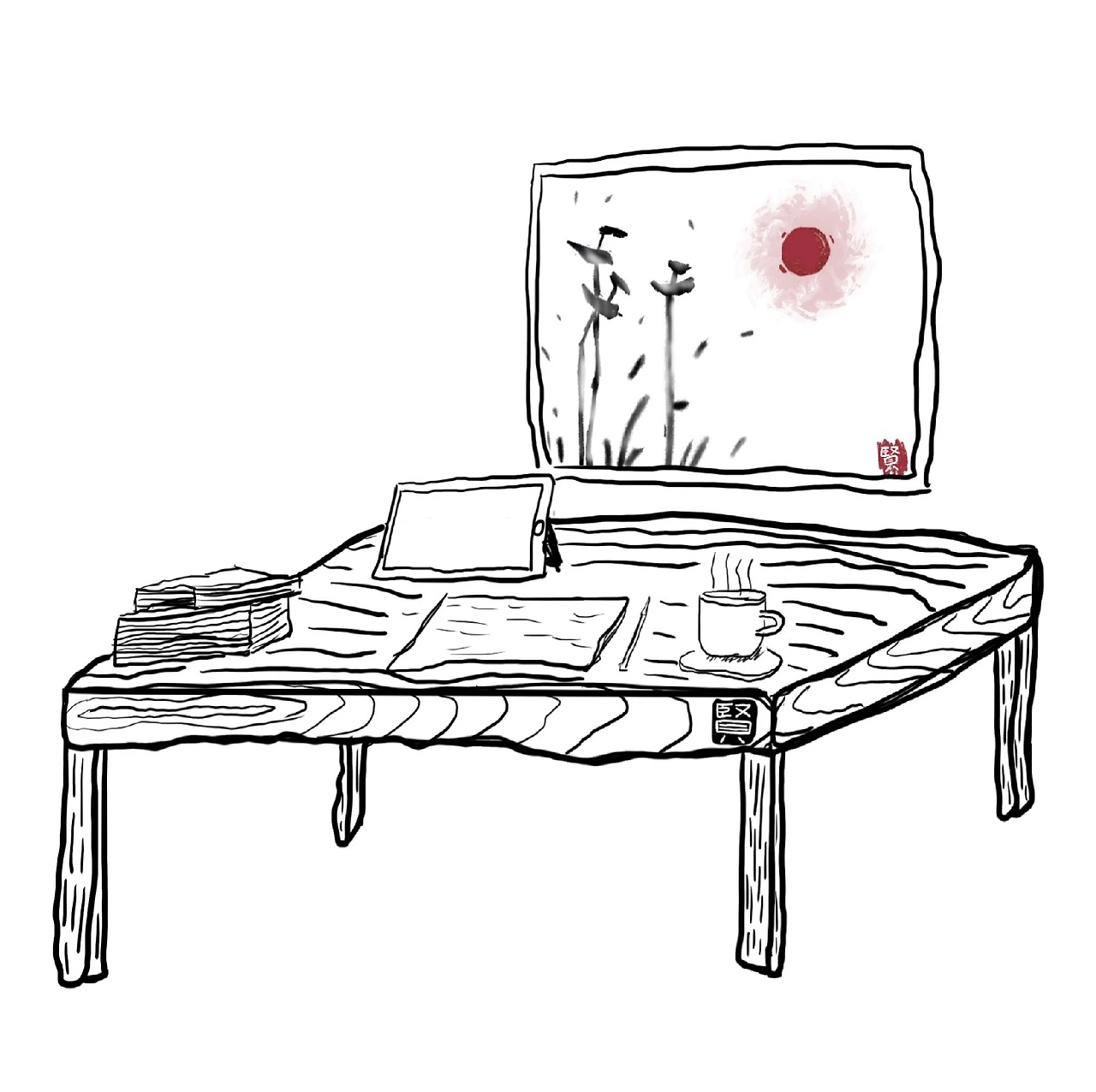 흙 내음 가득 그려진 낡은 나무책상 하나 갖고 싶다