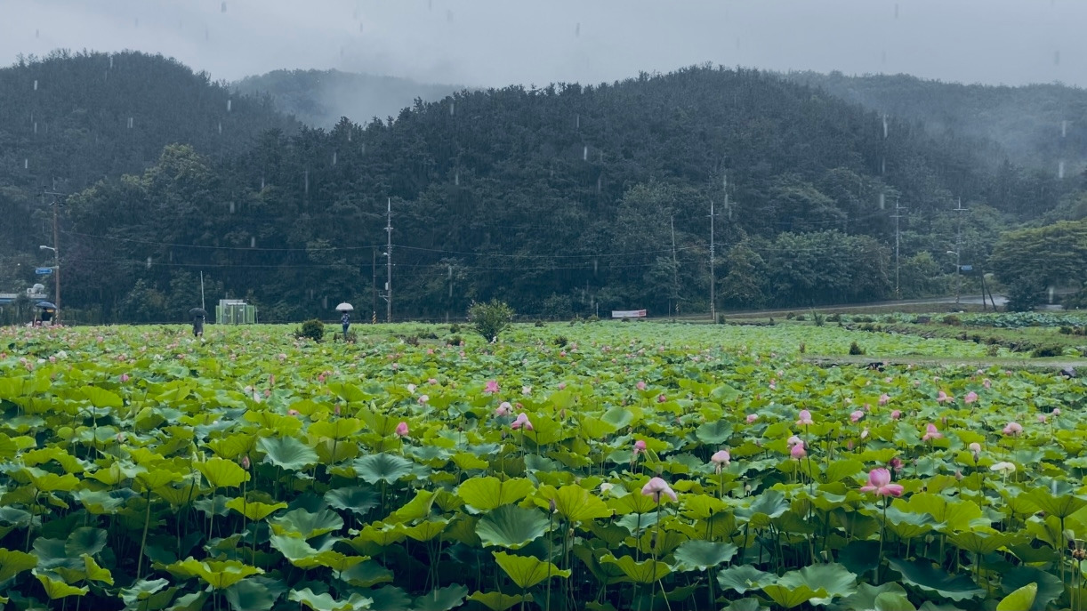 연꽃은 무르익어 군데군데 분홍빛 물결을 이루고