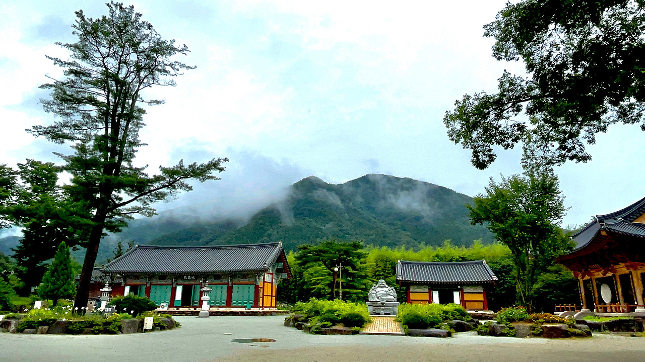 비 오는 날의 사찰 풍경이란 건