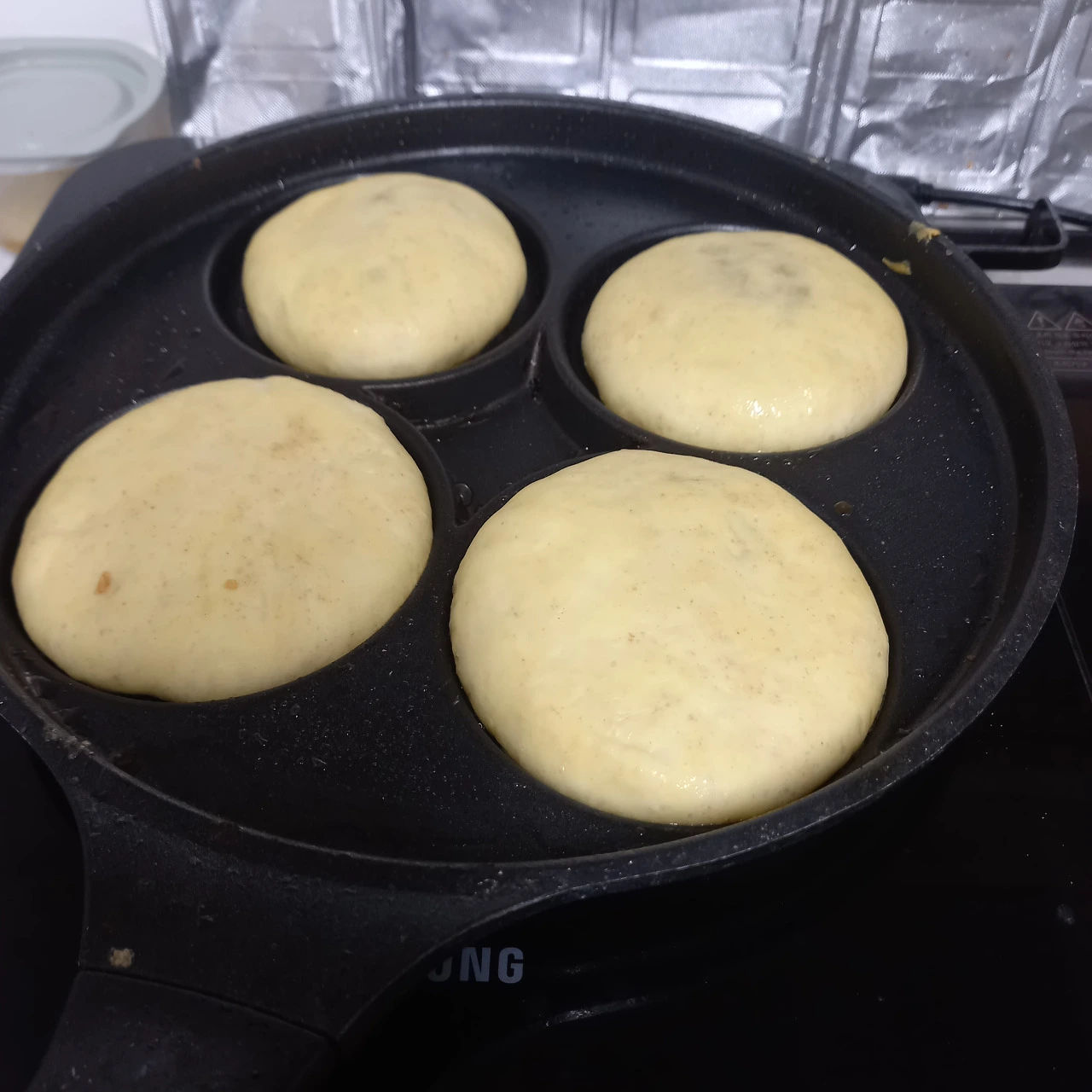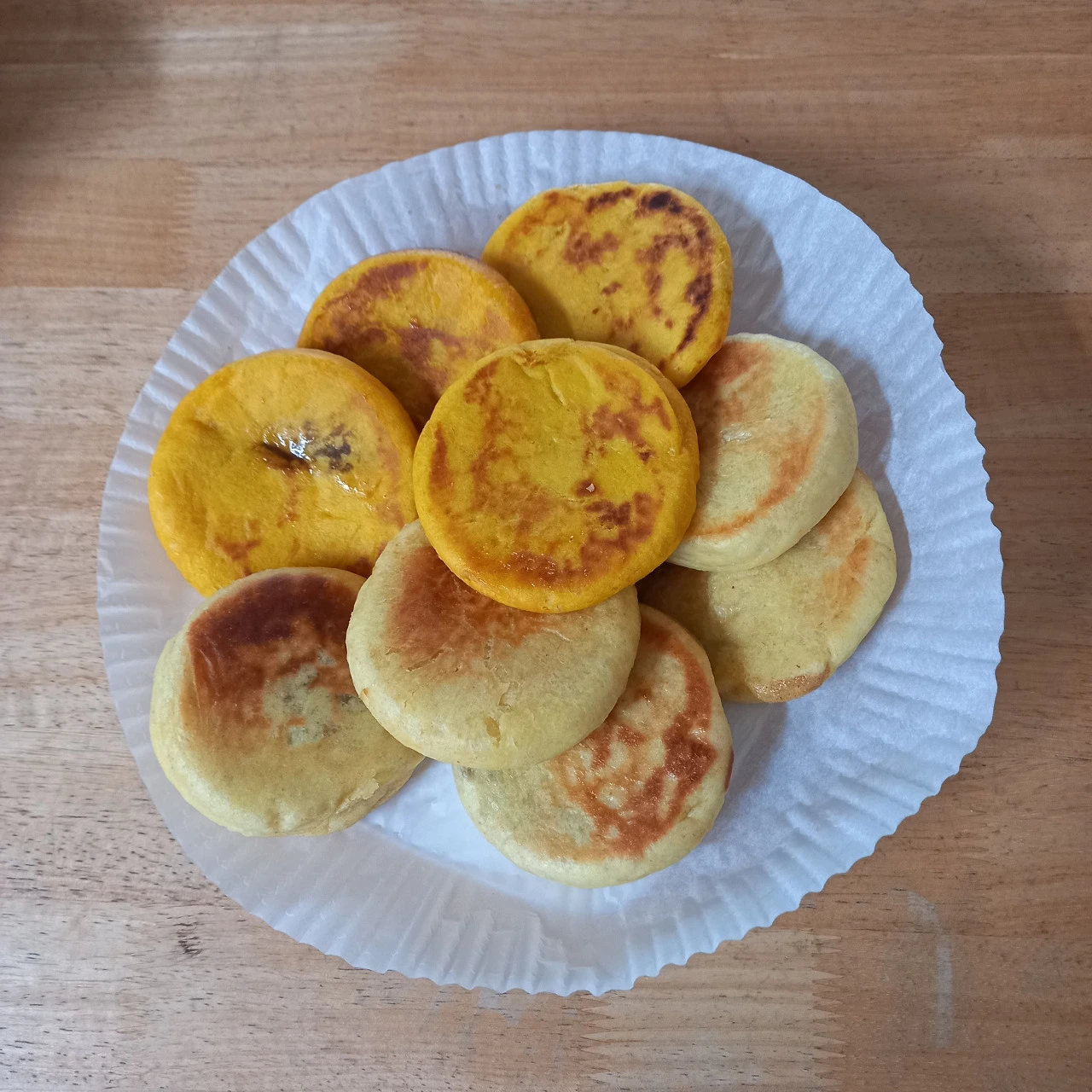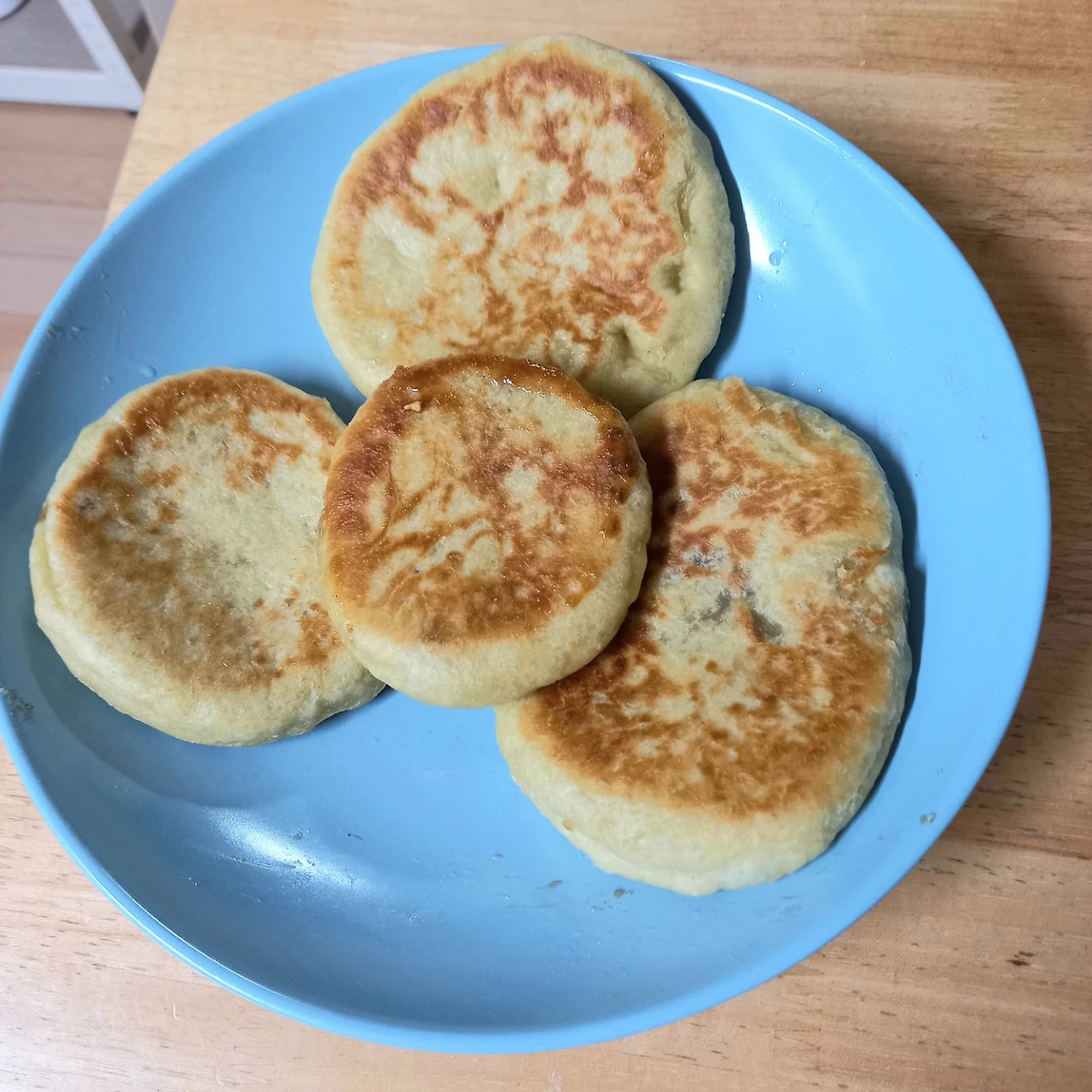 구워지면서 호떡이 점점 부풀어 호빵이 되나 싶었다. 모양을 더 납작하게 눌렀어야 했는데 ㅎㅎ