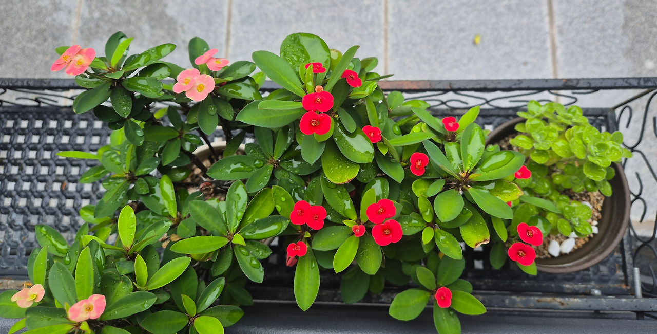 그리고 가지치기를 한 꽃기린은 훨씬 안정적인 모습이었고