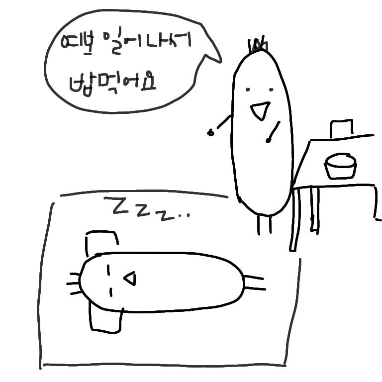 잠에서 덜 깬 남편이 비몽사몽간에 투덜 댑니다.