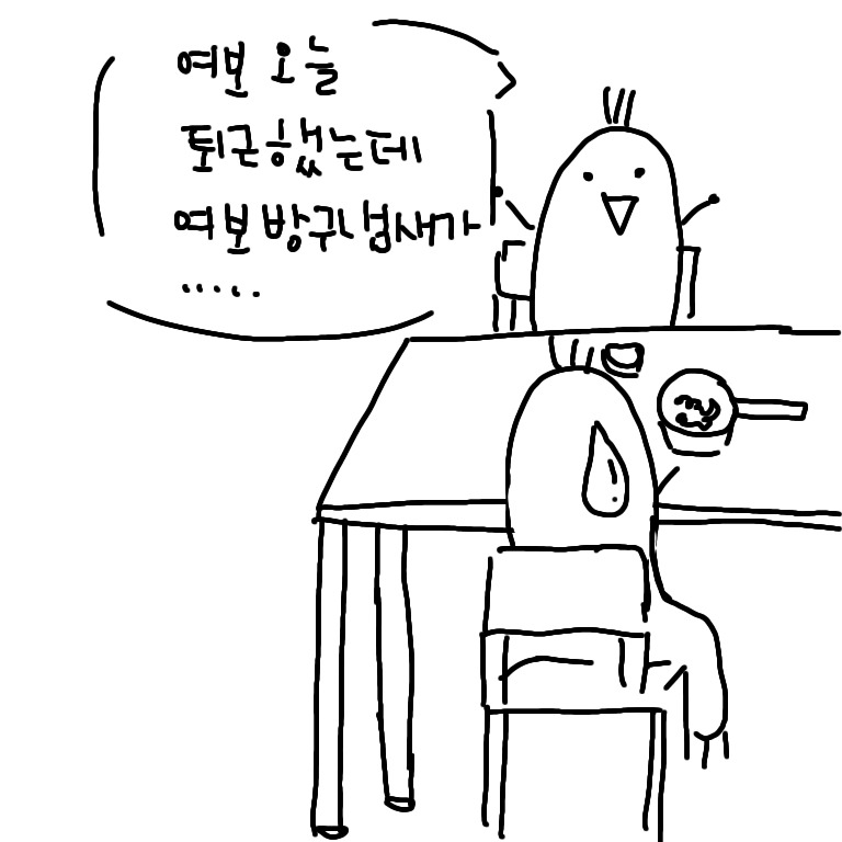 화장실에서 "똑똑 똑똑~ 나랑 눈사람 만들래~" 드립을 쳐보았지만 역시나 남편은 출근한 지 오래였습니다.