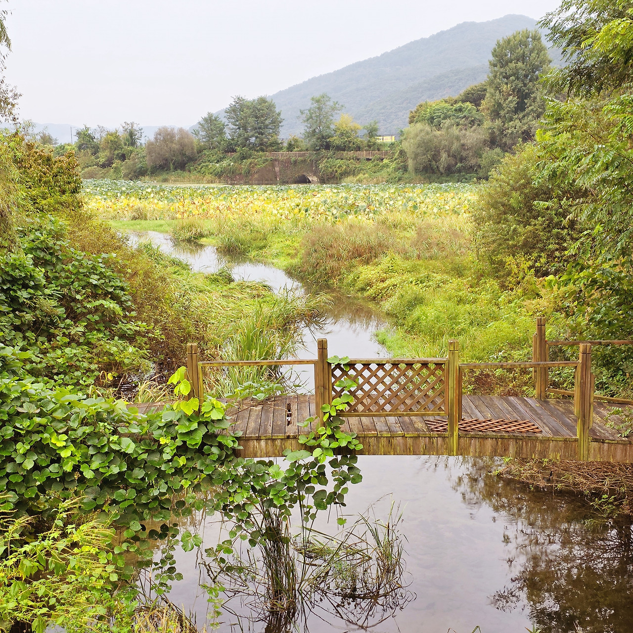 그렇게 걷다 보니 아름다운 연못의 연꽃들이 보였고, 작은 다리도 멋진 풍경을 이루고 있었다.